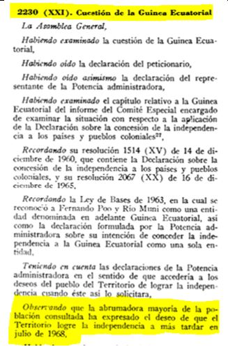 El règim franquista després de la segona resolució de 1966 no va tenir més opció que buscar una solució per salvar ja no la sobirania de Guinea Equatorial, però sí els interessos econòmics i industrials espanyols a guinea.